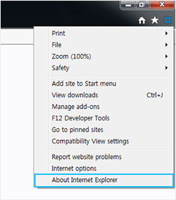 - ② Select "About Internet Explorer" menu