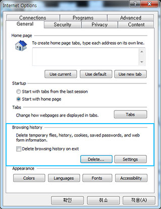 - ③ Under browsing history > click "Delete" to delete any cookies and cache.